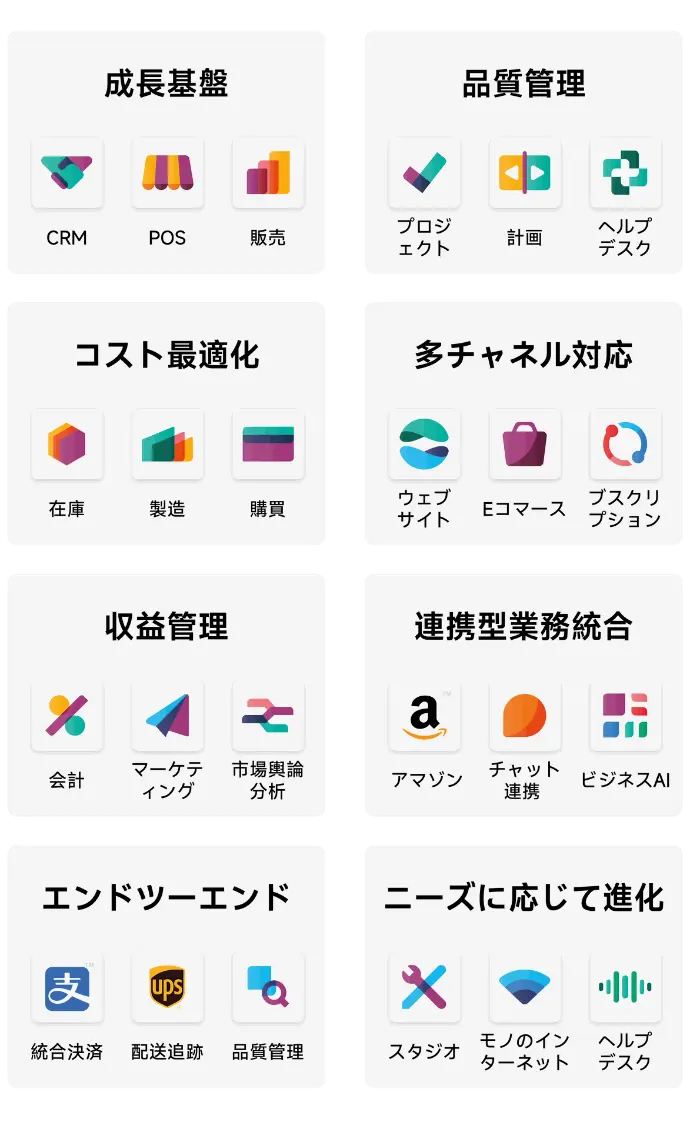 日本企業の経営・業務管理のあらゆるニーズを完全にカバーし、感動を与える価値と良心的な価格で、企業のデジタル化を支援します。