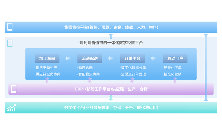 アジャイルフロントは従業員、顧客、パートナーにシーン化、モバイル化の協同作業プラットフォームを提供する。インテリジェントミドルはデータを駆動とする業務プロセス管理と共有サービスを構築し、データに基づくインテリジェントな決策を実現する。安定したバックは企業のデジタル化のモデルチェンジに安定、柔軟、安全なプラットフォームサポートを提供する。