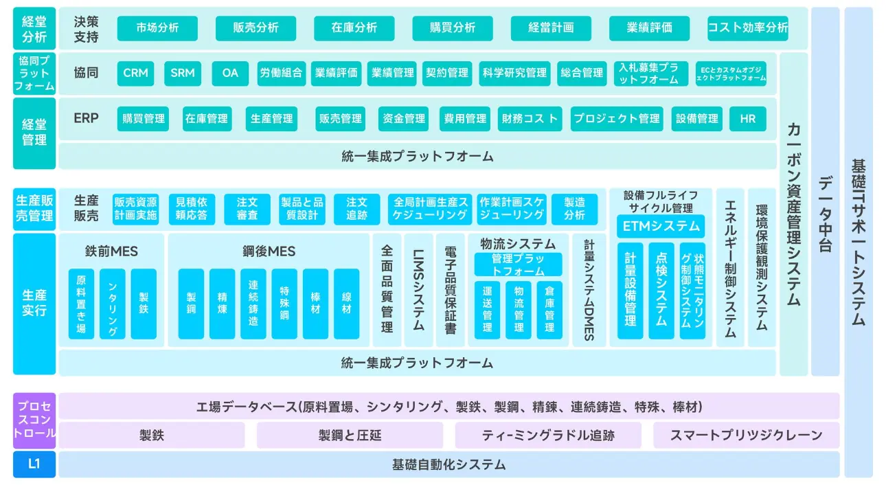 開源智造は、鉄鋼・冶金企業に対して「業務実行」「経営管理」「意思決定支援」を包括的にカバーするソリューションを提供します。 生産・調達・販売を統合した サプライチェーン一体化、業務・会計・税務を統合した 業財務一体化、そしてガバナンス・サービスを統合した 経営管控プラットフォーム を構築。 これにより、冶金企業は 自動化・デジタル化・インテリジェント化 を実現し、コスト削減と効率向上を両立。経営管理レベルと取引先満足度を継続的に高め、企業全体の「デジタル競争力」を強化します。